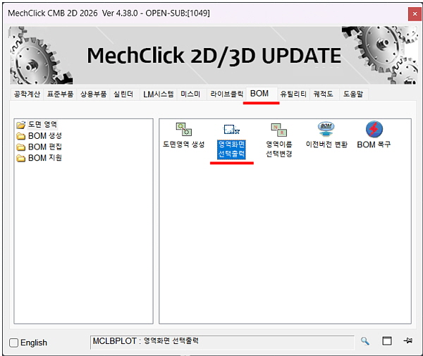 메인 카테고리 | MechClick CMB 2D | 서브 카테고리 | 도면영역 |