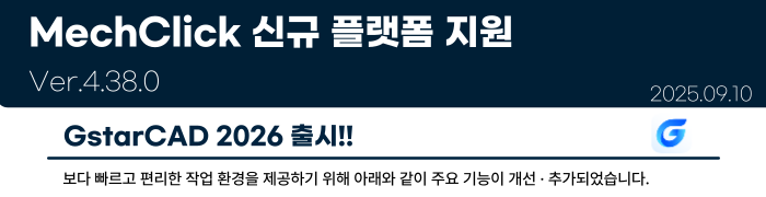 | 제목 | [업데이트] GstarCAD 2026 출시! 멕클릭 지원 (2025.09.10) | ||